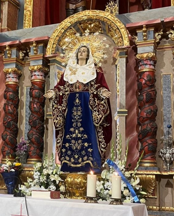 Con motivo del Aniversario de la Coronación Canónica de la Stma. Virgen del Primer Dolor, el día 6 de febrero, se celebró una Eucaristía en Su Honor a las 20:30 horas en la Capilla California en la Parroquia de Santa María de Gracia, presidida por el Rvdo. D. Francisco de Asís Pagán Jiménez.