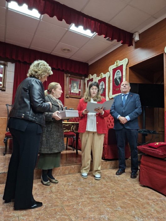 En la Sala Capitular de la Cofradía California, se realizó el acto de donación por parte de Dña. Mª de los Ángeles González Vera, hermana de la Agrupación, de una mantilla de sobremanto, en encaje blanco y de forma triangular para Ntra. Sra. de la Esperanza.