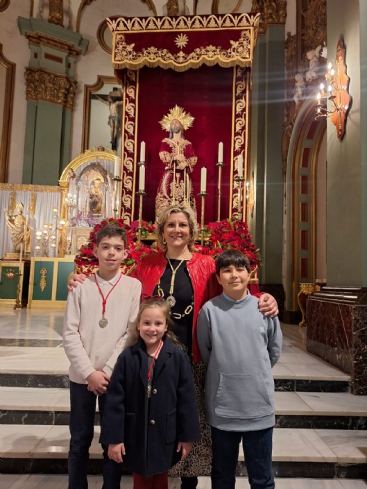 En la primera jornada del Triduo al Stmo. Cristo del Prendimiento, que se celebró el lunes 9 de marzo de 2026, en la Parroquia de Santa María de Gracia, la Agrupación de la Stma. Virgen del Primer Dolor estuvo representada por los miembros más pequeños de la misma.